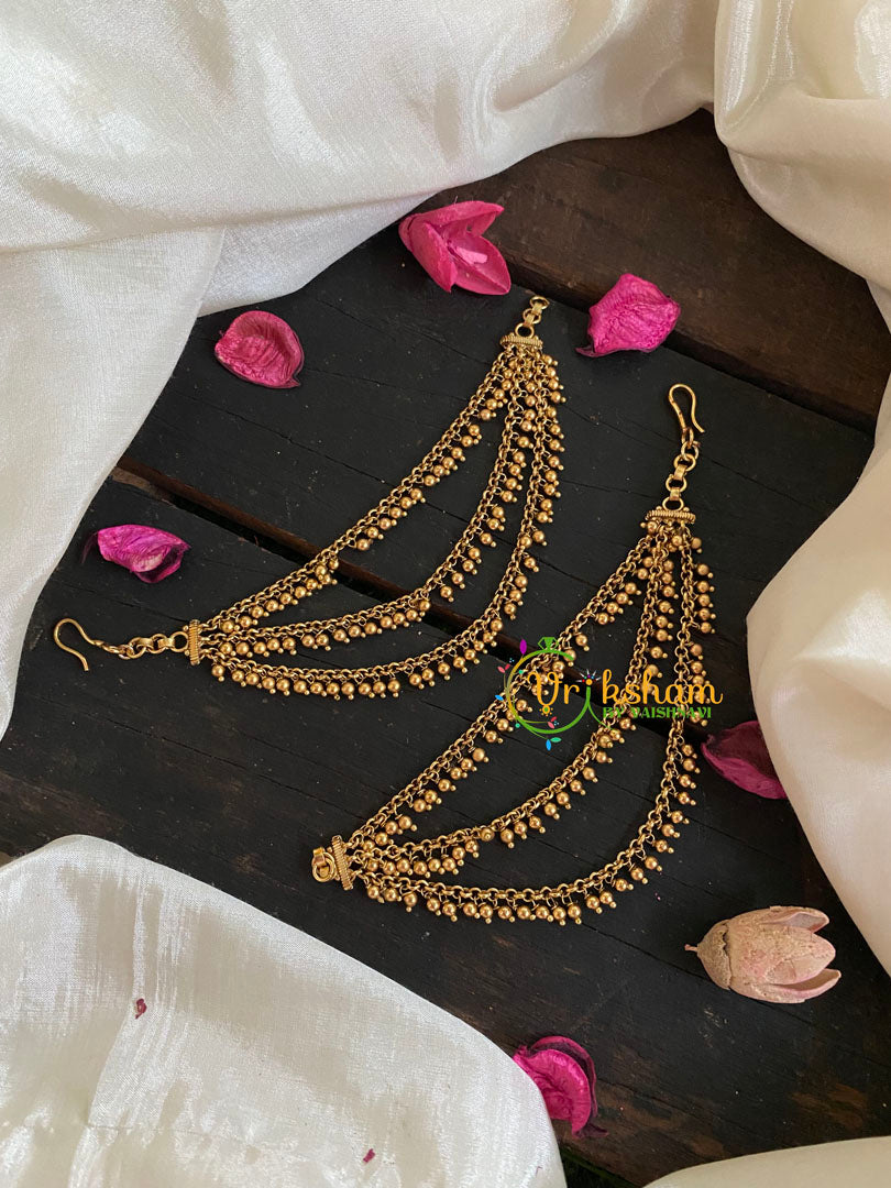 3 Layered maatil /Ear Chain- quality maatal with gold bead interluded with hanging ghungroo.