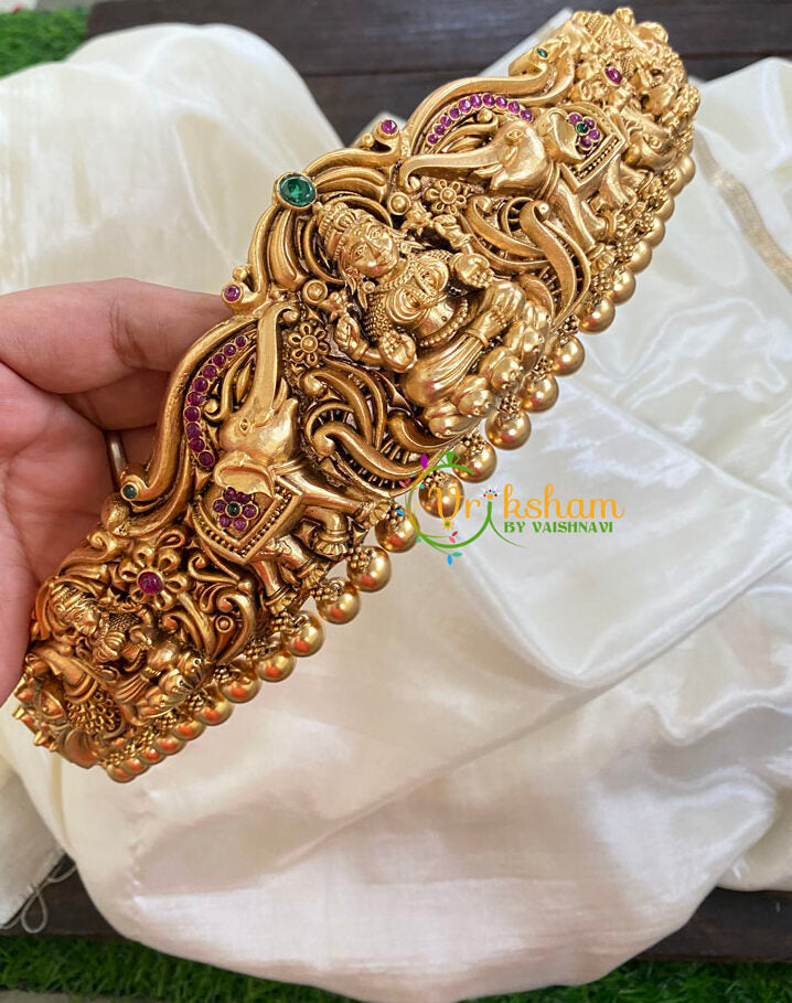Premium Gold look alike AD Stone Lakshmi Hipbelt – AD stone studded elephant, peacock and flower pattern hipbelt.