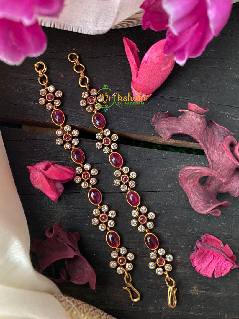 Premium AD stone Single Strand Maatil -red and white floral pattern stone maatil/maatal ear chain.