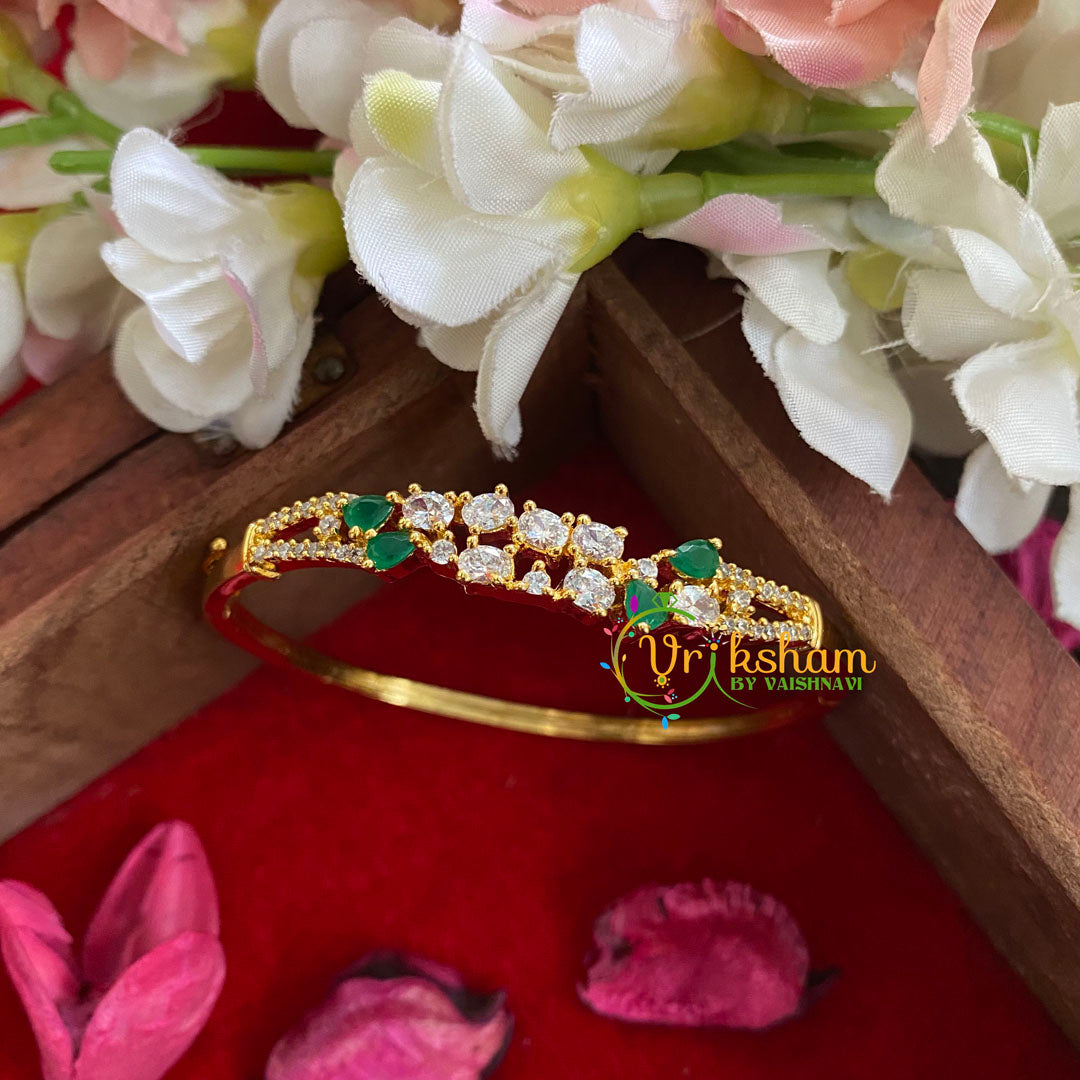 American Diamond Bracelet-green and white AD stone pattern -Gold Tone Bracelet.