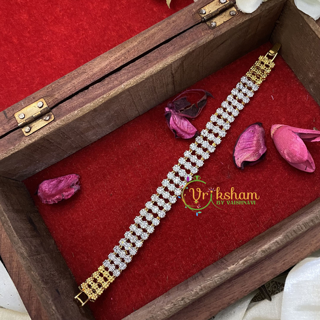American Diamond Bracelet-Chain-white AD stone pattern -Gold Tone Bracelet.