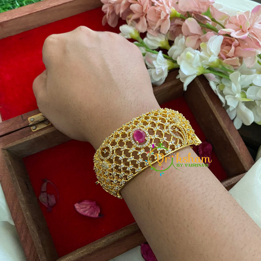American Diamond Bracelet-pink and white AD stone pattern - Gold Tone Bracelet.