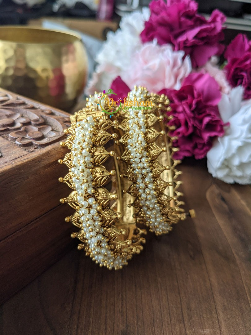 Antique Temple Bangles -Pearl Leaf Openable Screw Type Bangles -Gold Look Alike Bangles with temple look and polish.
