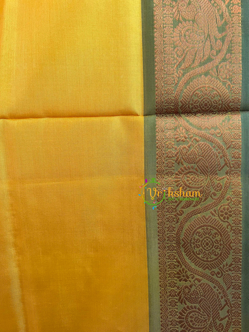 Yellow Chinnalampattu Saree with grey pallu- Banana pith vegan silk saree handcrafted elegant festive wear saree; unique kanchi border and pallu. Doesn't come with blouse -Saree only.