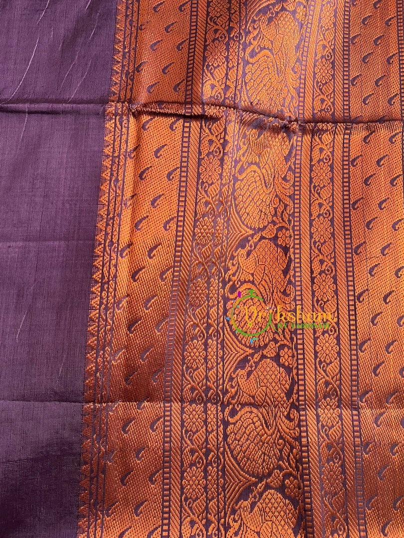 Purple Grey Chinnalampattu Saree with double copper border - Banana pith vegan silk saree handcrafted elegant festive wear saree; unique kanchi border and pallu. Doesn't come with blouse -Saree only.