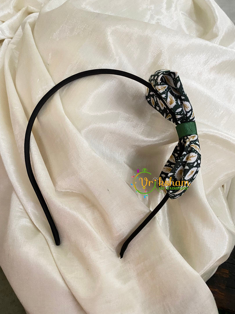 Daily Wear Head Band with Bow with Leaves-Black White Green hair accessory for daily wear.