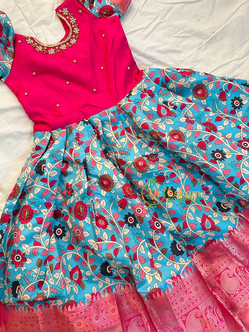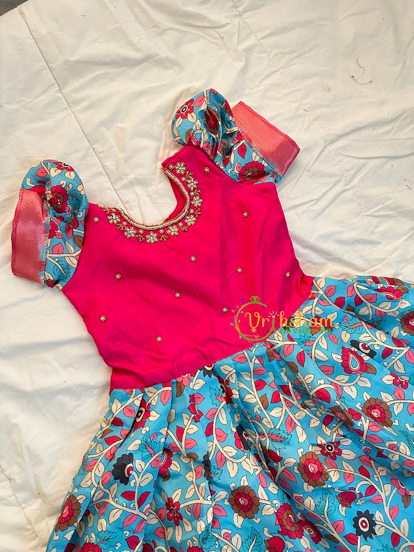 Pink with Light Blue Indian Traditional Dress for Girls- Girls Gown -VS1244