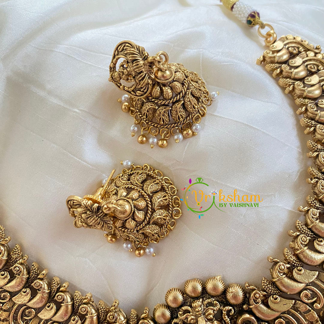 Premium Nakshi Choker - Nagas Temple Neckpiece -Quality Matt gold finish.