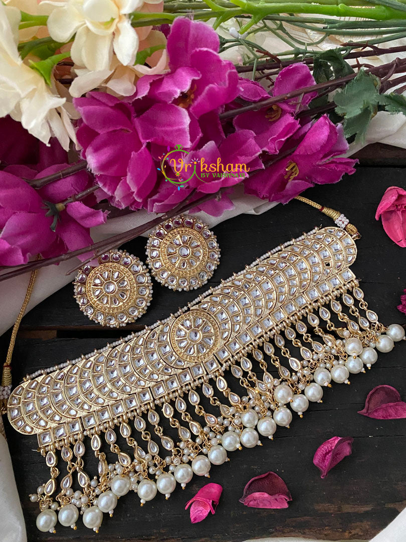 Exquisite Kundan Choker -White - Pearl finish kundan high neck choker; comes with matching danglers.