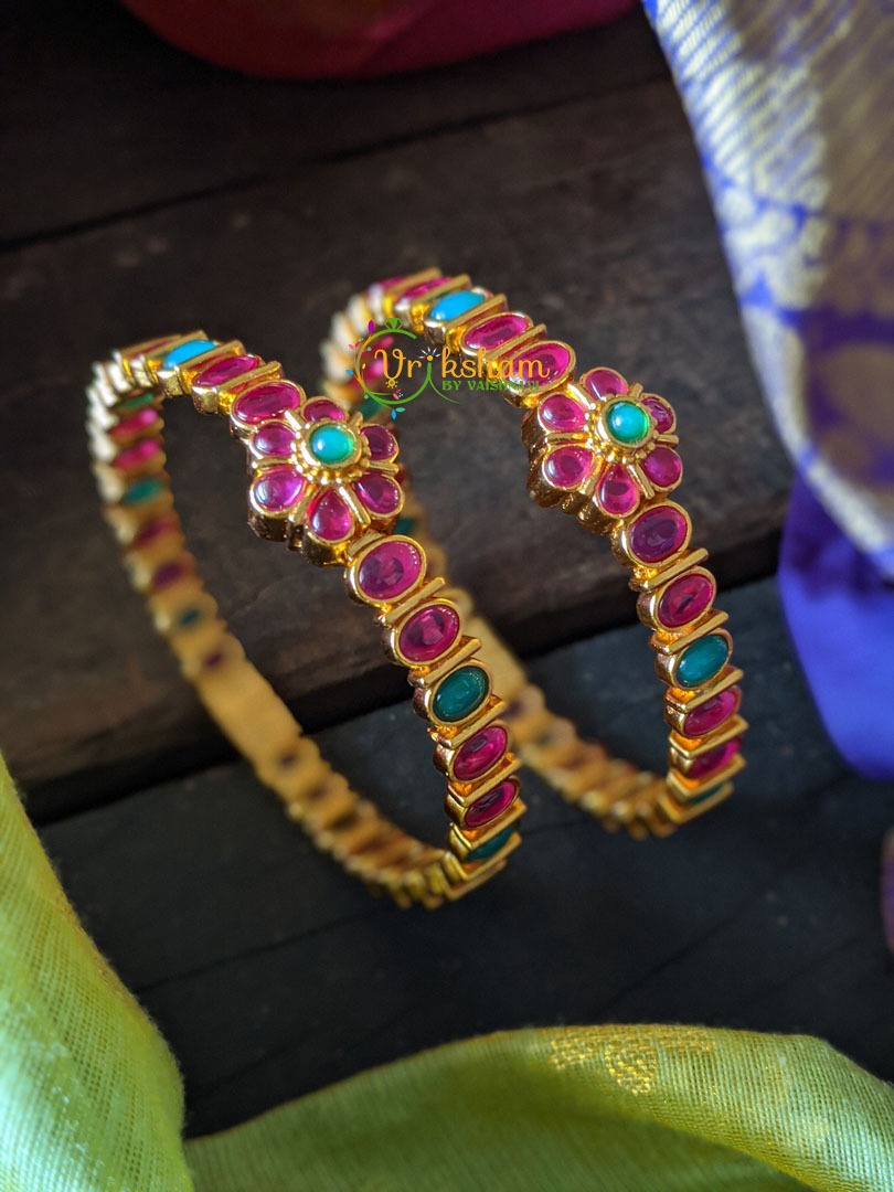Festive Kemp Bangles Openable -Red and Green -Gold like polish finish, full red and kemp bangles with single flower pattern. Comes as a pair only.
