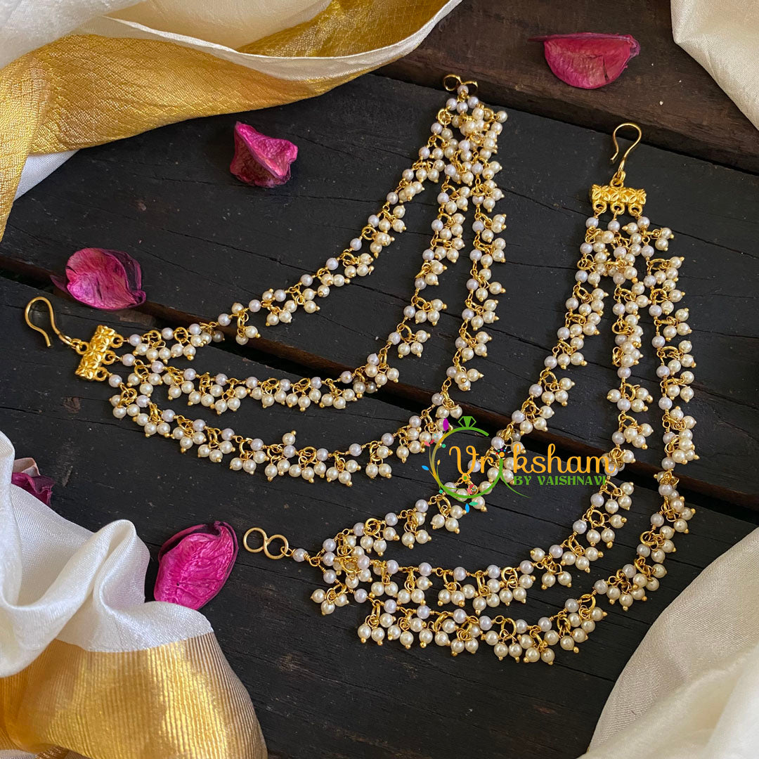 Guttapusalu Ear chain -Guttapusalu maatil -3 layered red stone studded guttapusalu hanging ear maatal.