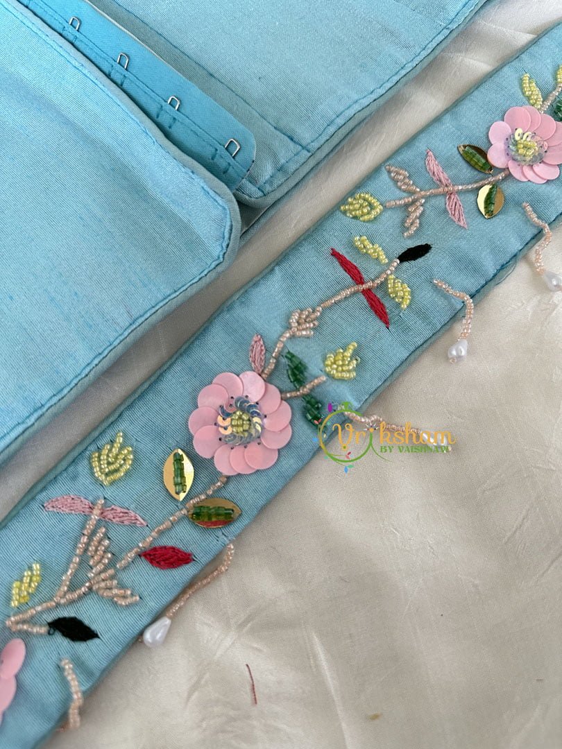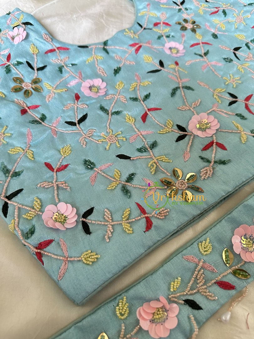 Premium Hand Embroidered Readymade Blouse -Ready made hand crafted blouse with belt; both casual and party wear blouse.; hand embroidered with beads sequins and threads.