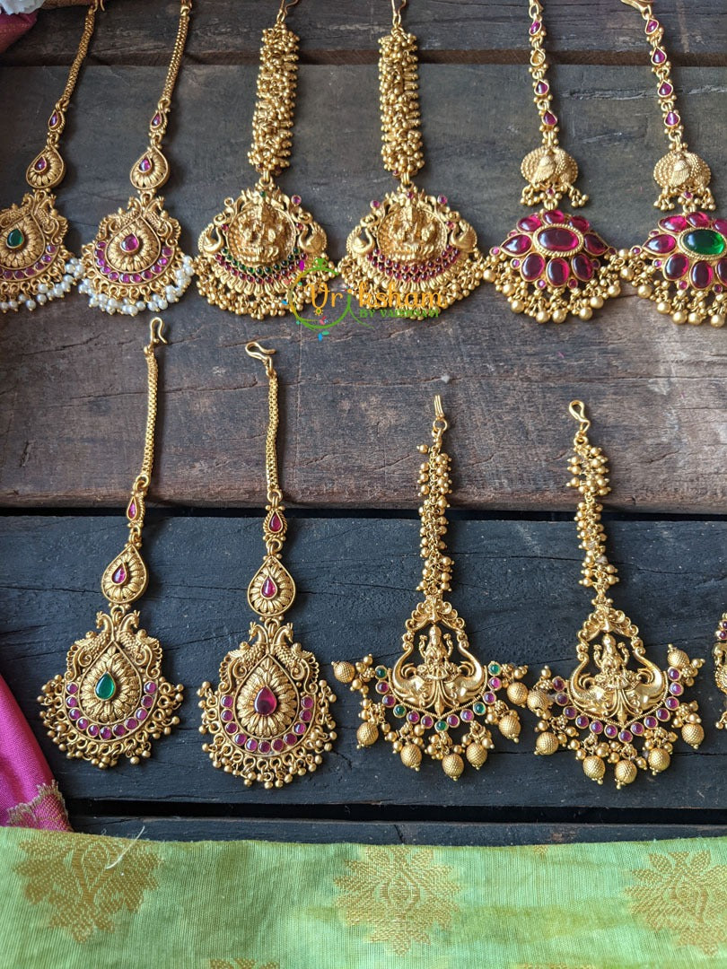 Kemp and Temple Maang Tikka -The most sought after bridal tikkas in all sizes is available now. These are center tikkas which modern brides recently have been preferring more along with their wedding jewelery rather than the double sided tikka/nethi chutis.