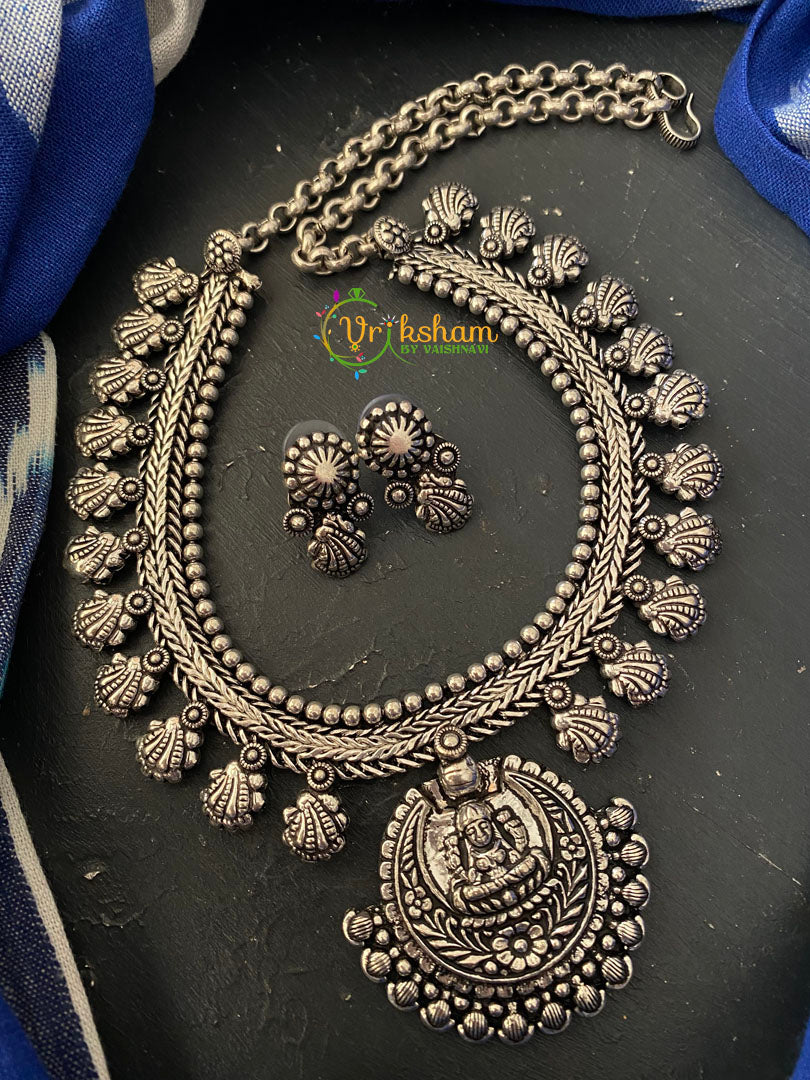 Kolhapuri Lakshmi Short Neckpiece-Temple Choker; Lakshmi pendant with shell pattern. Comes with a pair of studs.