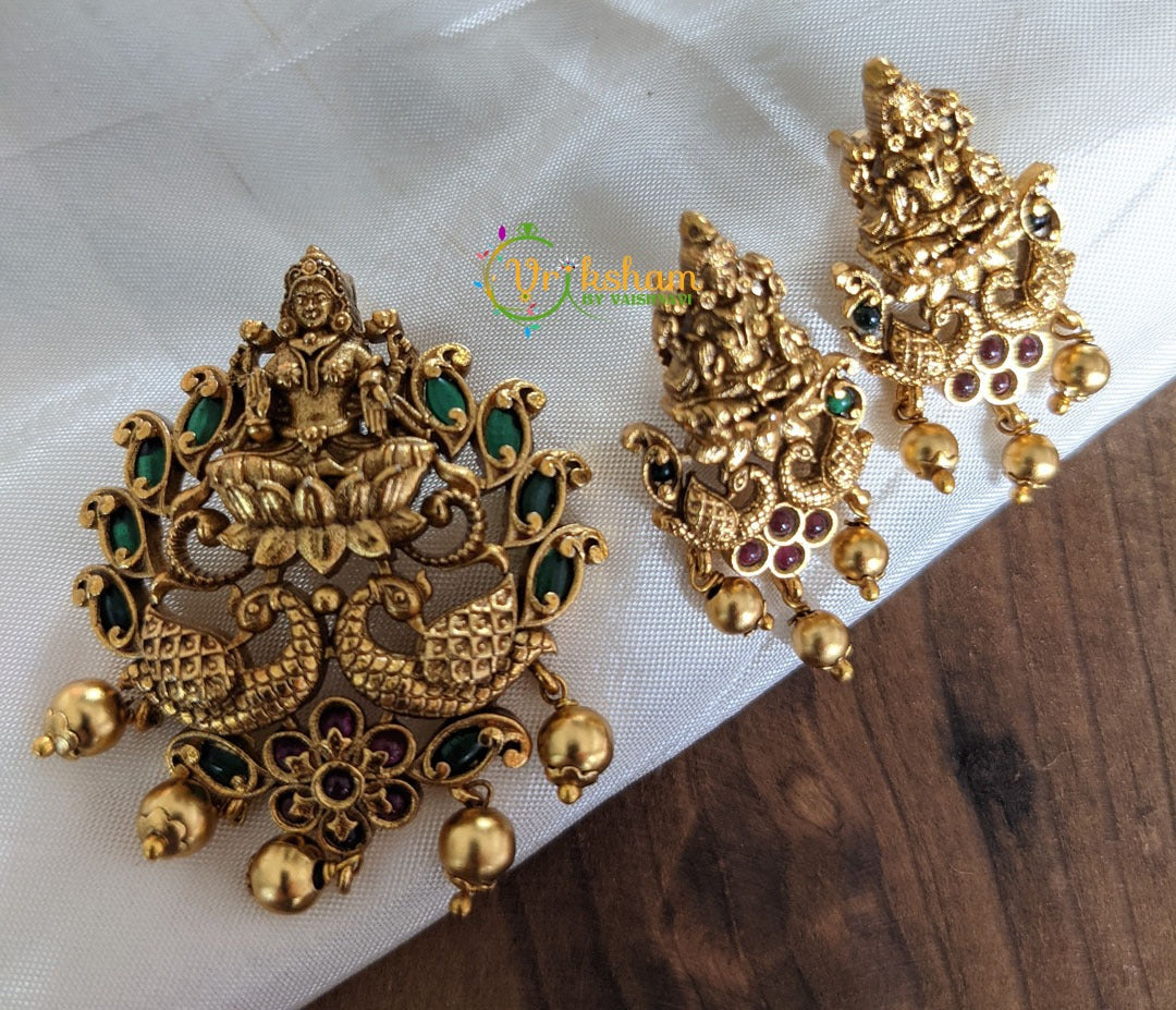 Lakshmi Pendant - Temple SMALL Pendant -with imitation stones; comes with matching earrings.