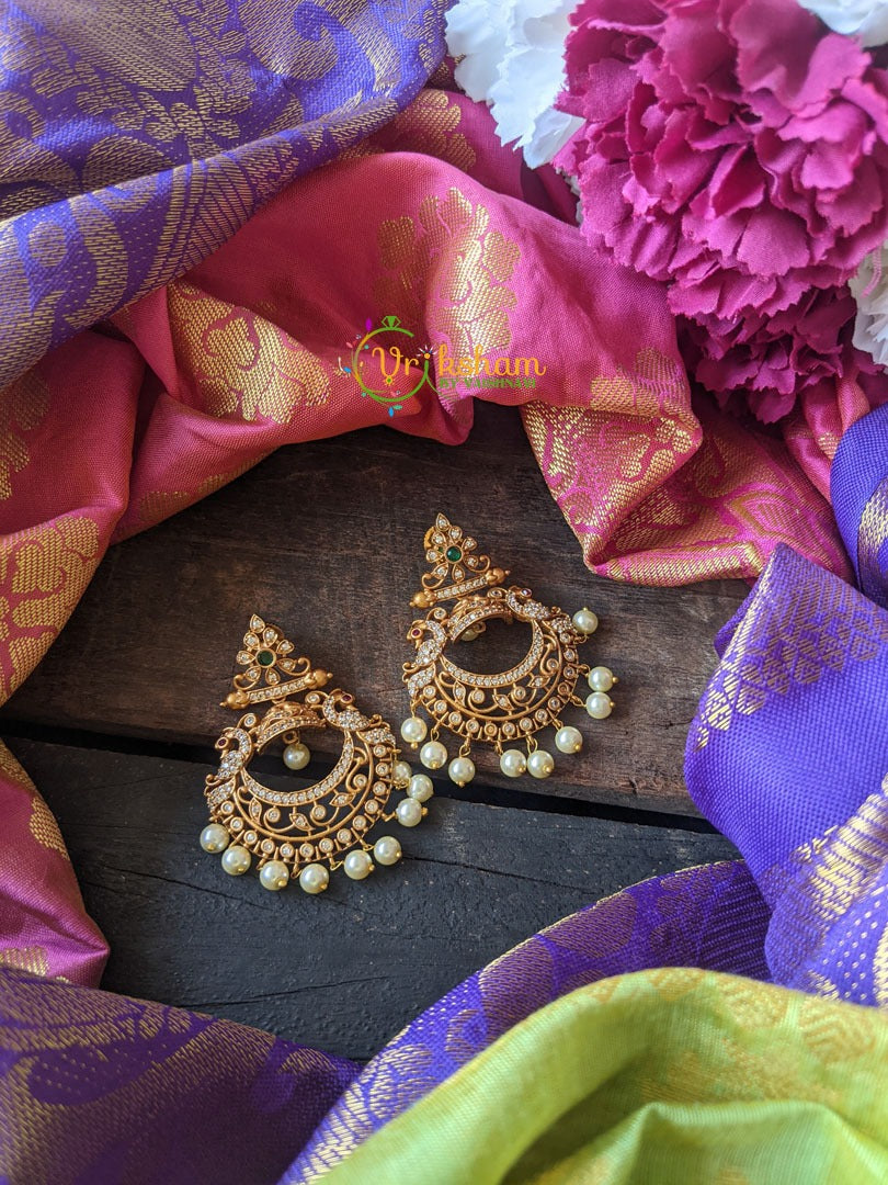 Matt Finish Chandbali Danglers -Fancy Festive Dangler with green white and red stone and pearl finish. Party wear dangler.