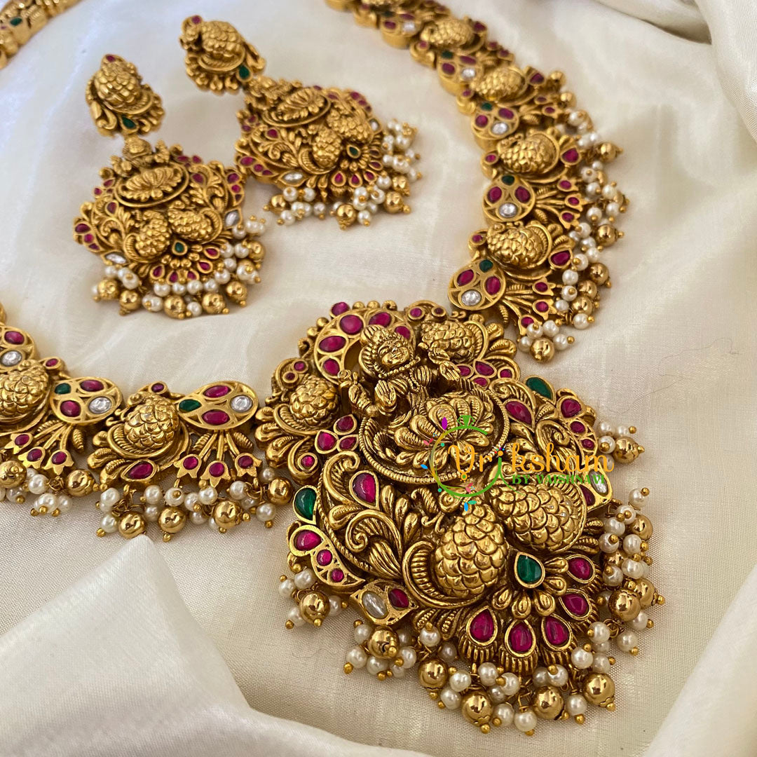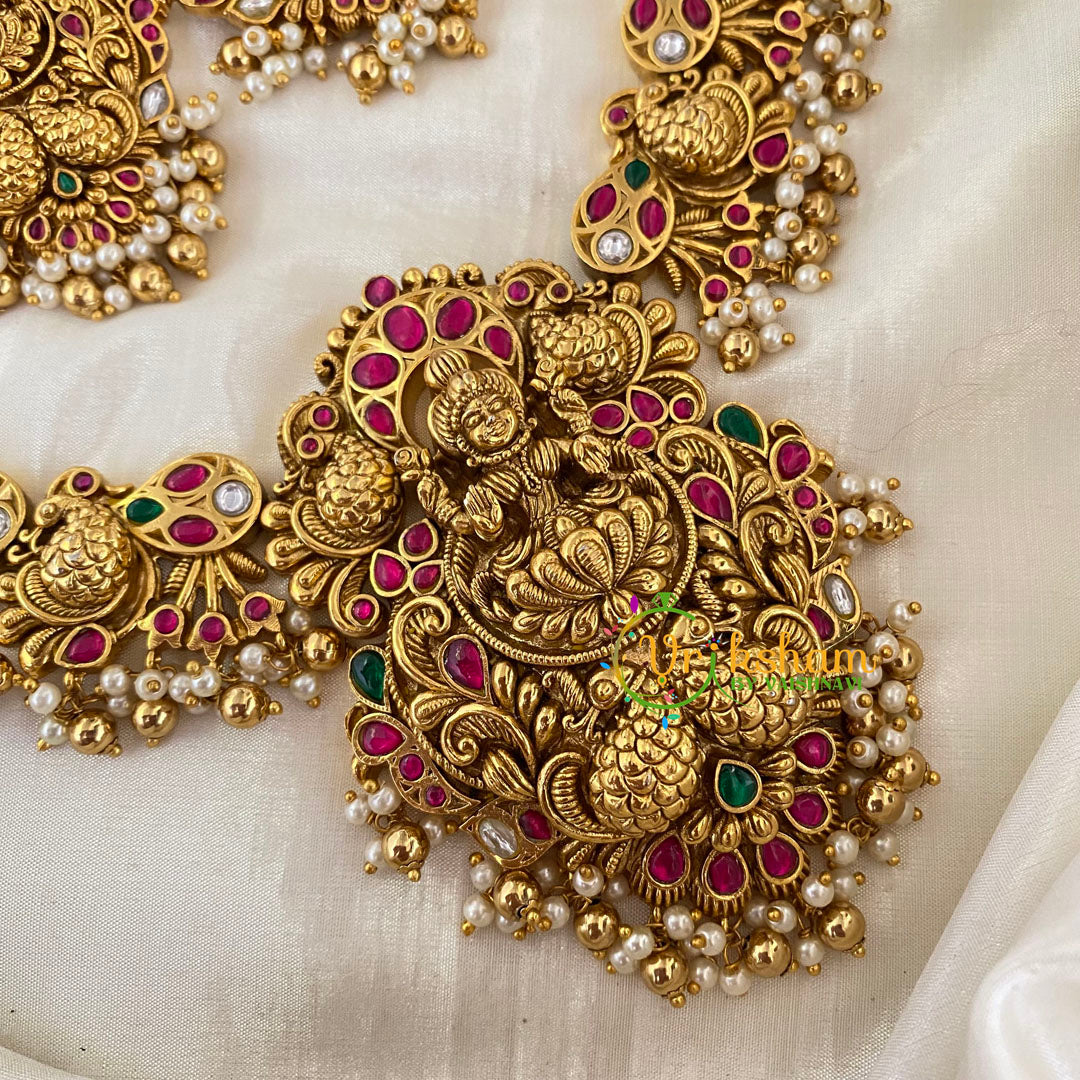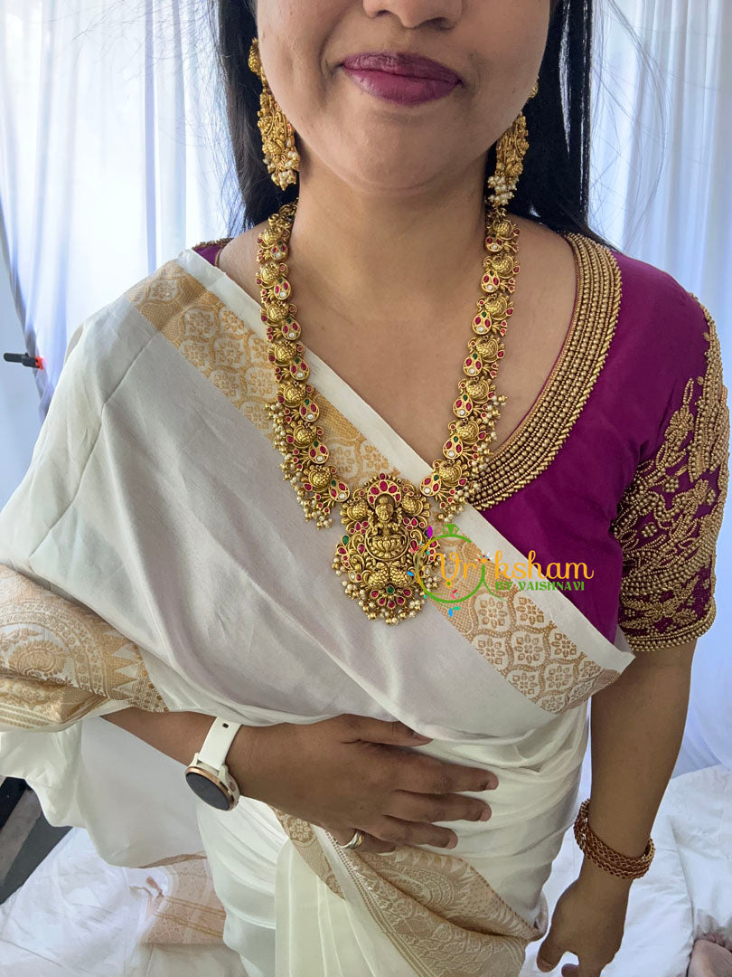 Precious Jadau Kundan Lakshmi Haram intricately worked with kundan & precious stone studded, pendant, premium quality neckpiece.