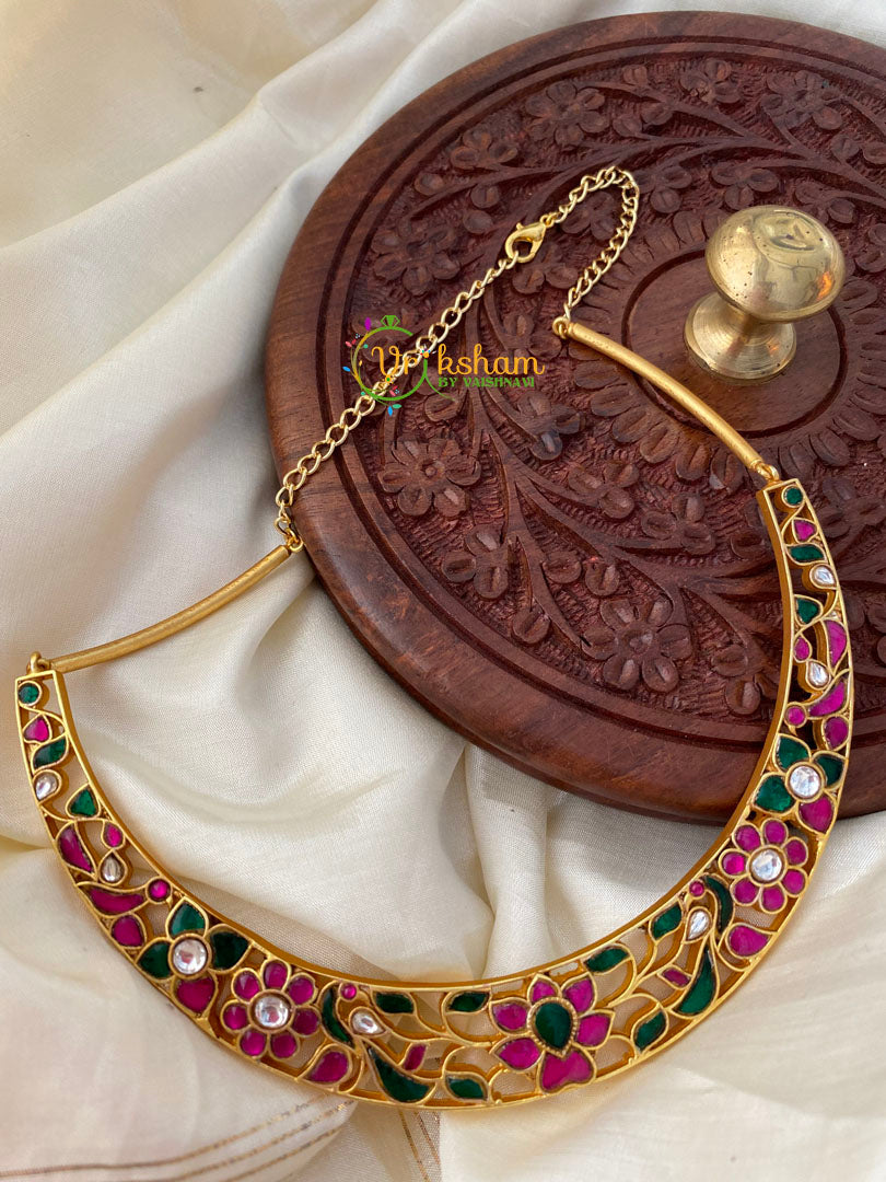 Premium Jadau Kundan Hasli Choker -fancy trendy filigree pattern jadau kundan work floral design hasli choker.