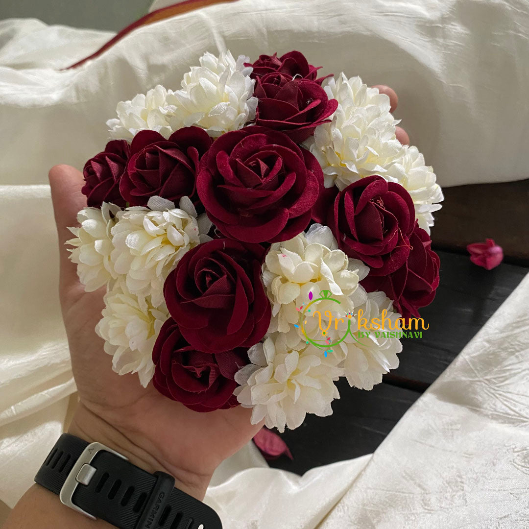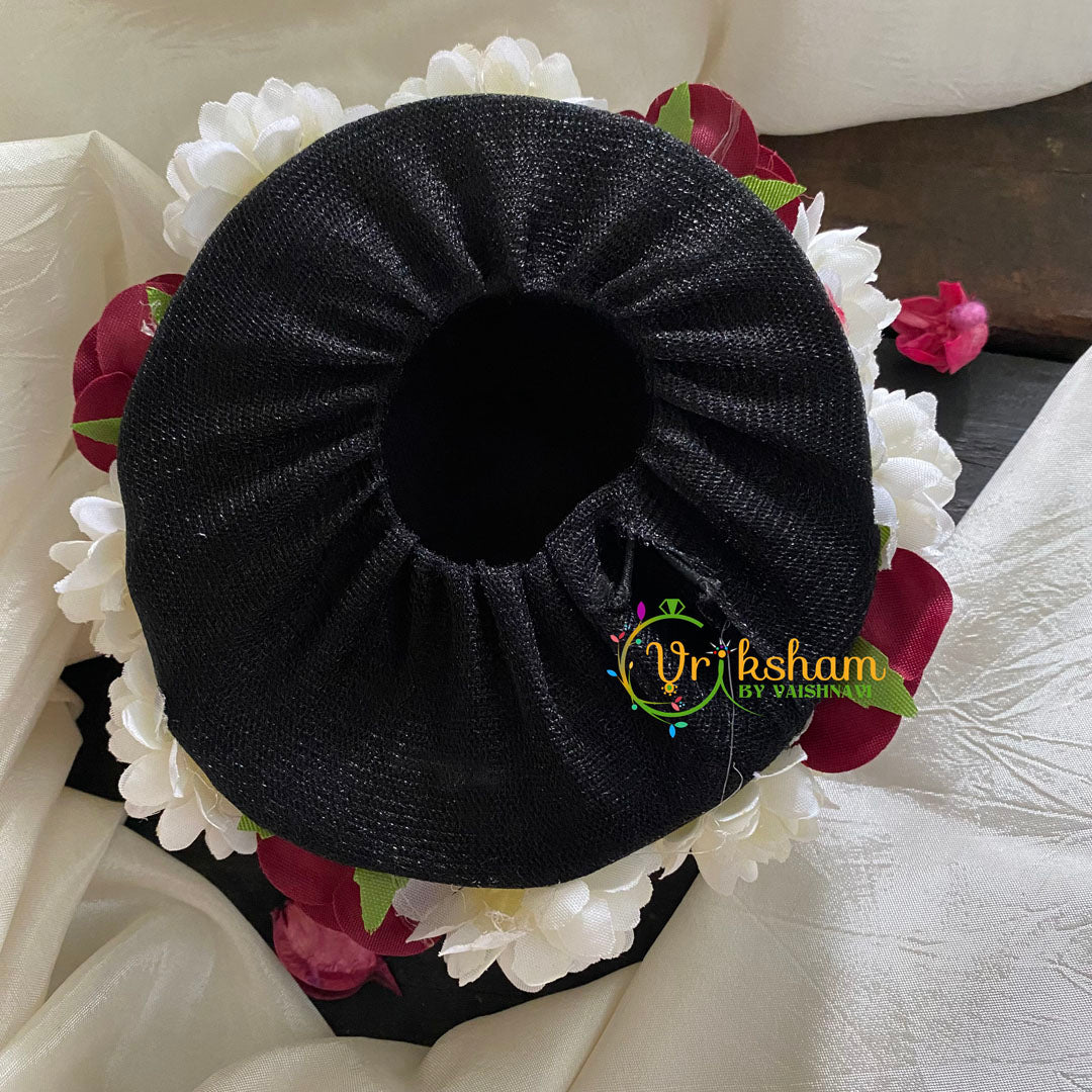 Rose Jasmine Bridal Hair Accessories -Rose Mallipoo Veni- Bridal Hair Accessory comes attached to a bun net that can be worn on a bun.