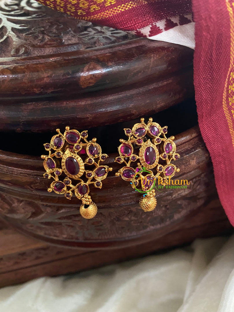 Simple AD Stone Studs-Red -regular AD stone studded Floral pattern with single ghungroo drop.