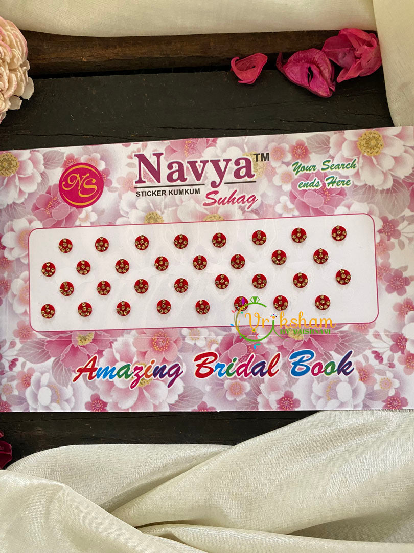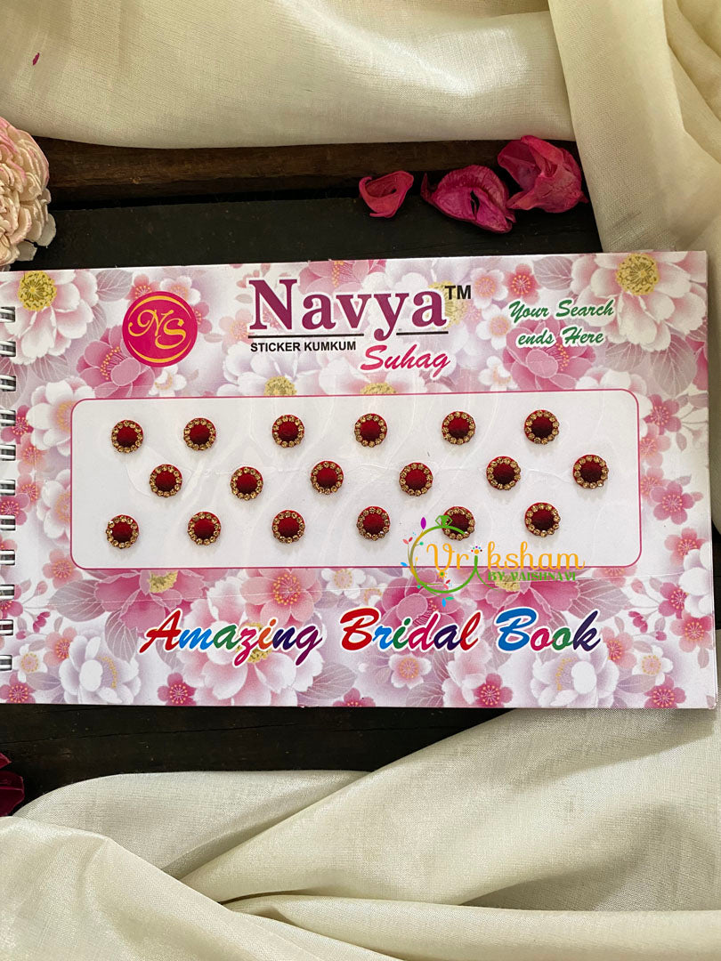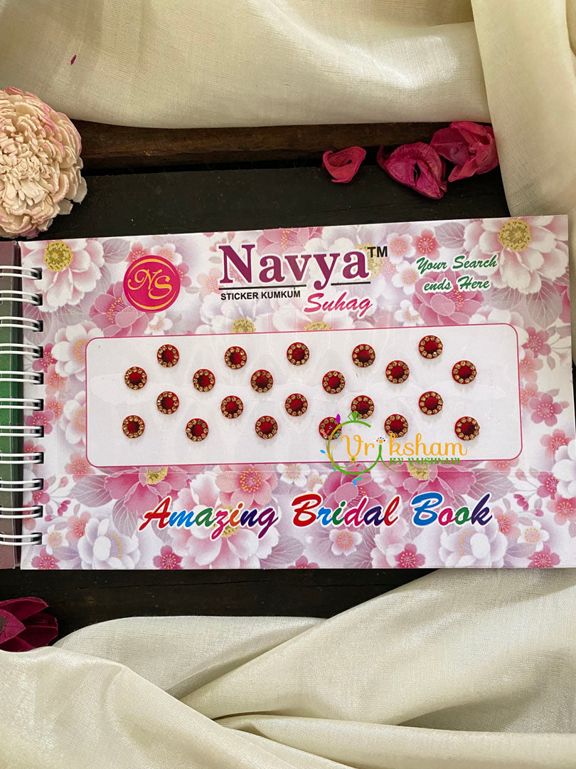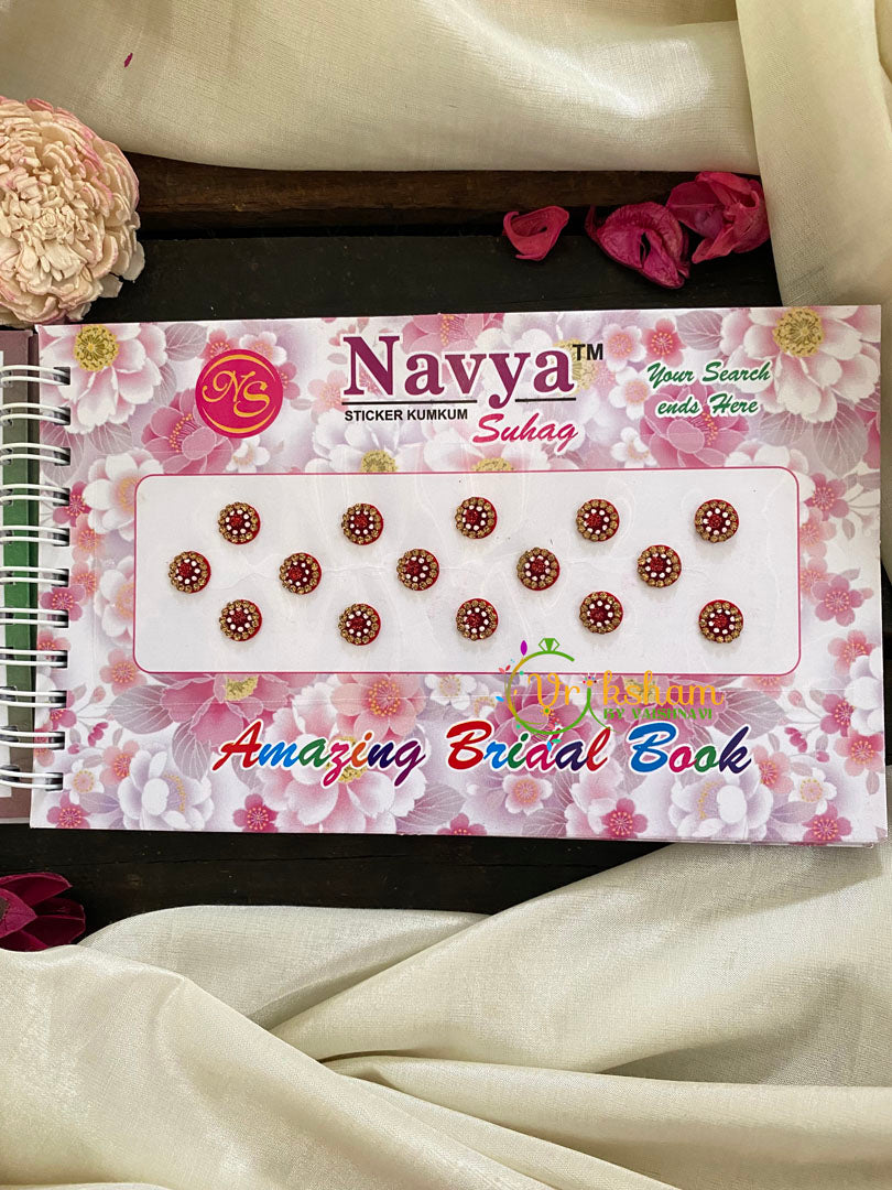 Cocktail Stone Red Sticker Bindi Book-Navya Short– pages of bindis of different colors in sheets.