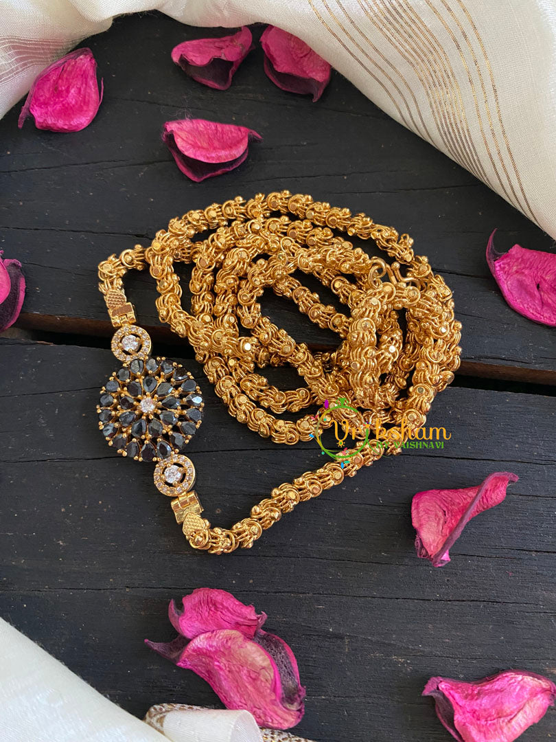 Traditional AD Stone Mogappu Chain-Round-Black pattern stone studded mugappu chain/Mogappu chain.