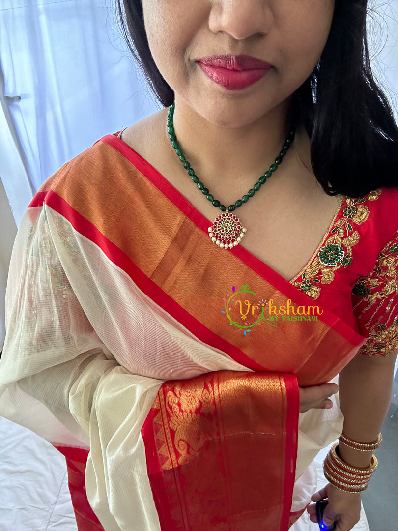 Green Bead Traditional Kemp Addigai -Red Green Kemp imitation kemp stones studded pendant with pearl finish. NECKPIECE ONLY.