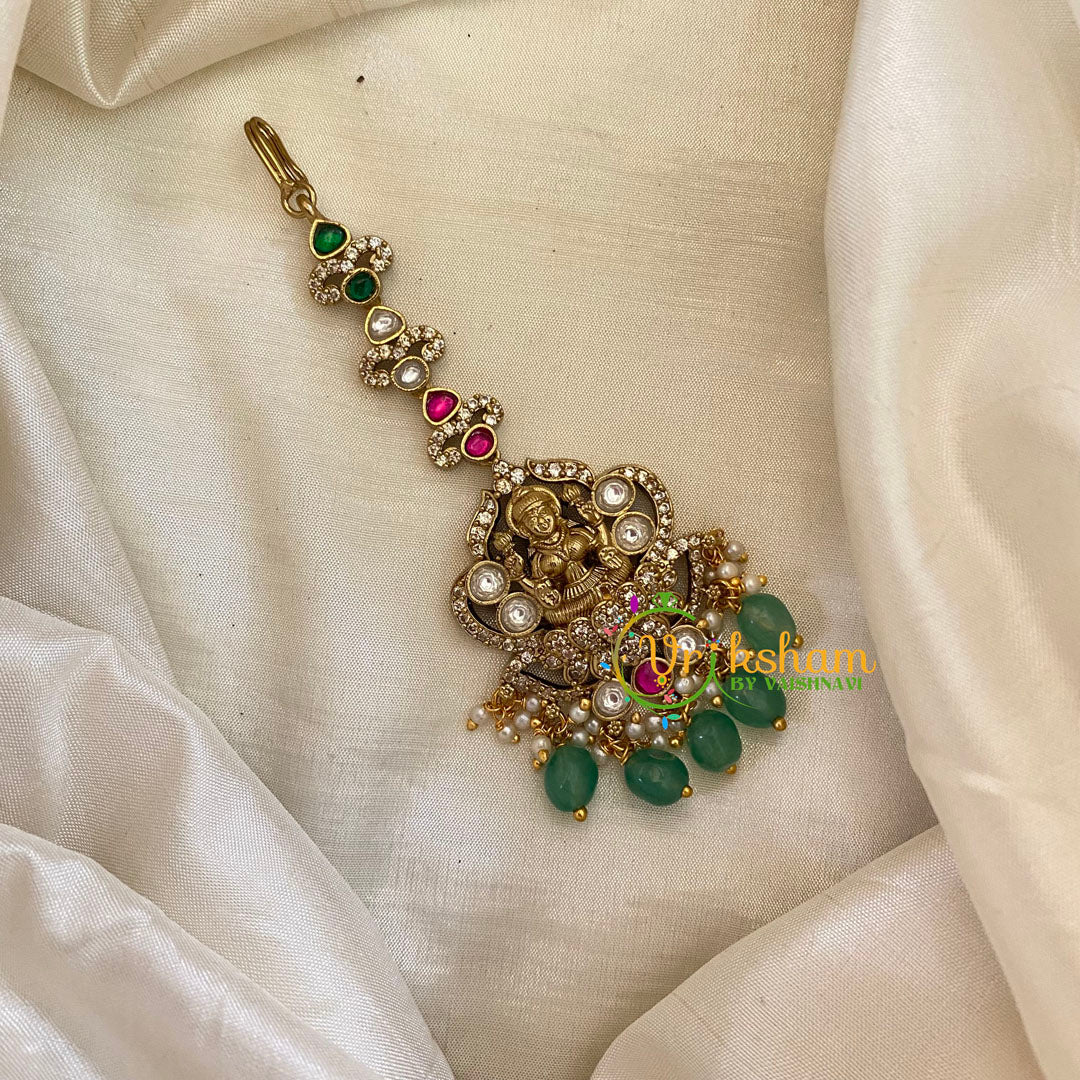 Victorian Diamond Lakshmi Maang Tikka - designer; semi precious stone studded bead finish maang tikka.