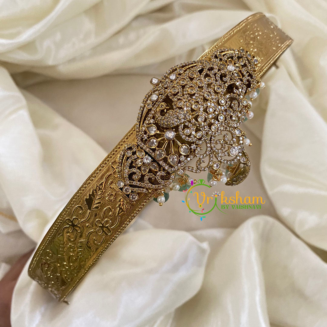 Premium Victorian Diamond Pendant Hipbelt - white precious stone studdedd royal jewelry; adept for bridal wear.