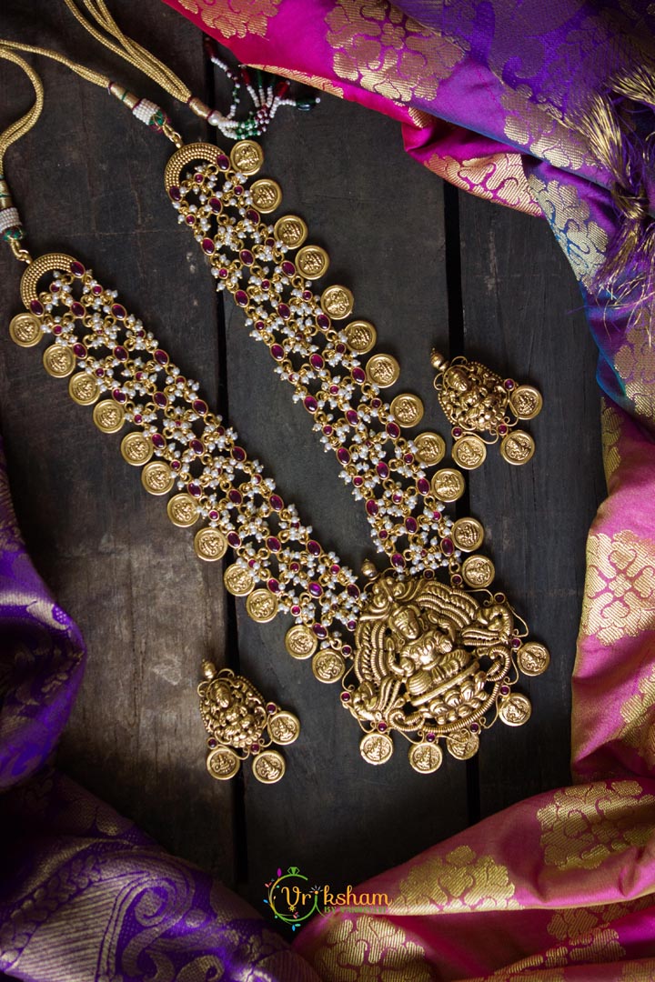This is long haaram which has a very unique style and is of premium quality and looks gold alike. Makes it traditional looking with the coins