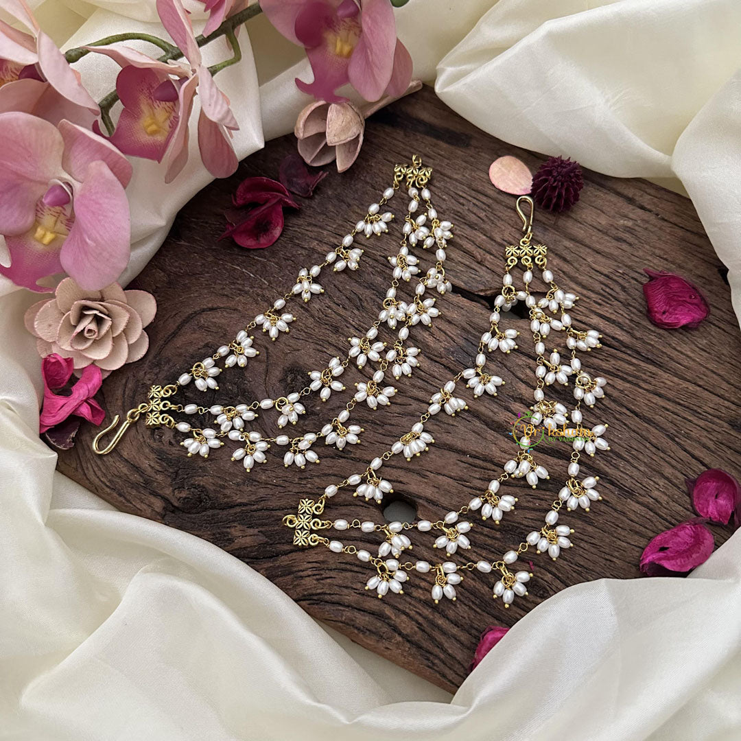 Indulge in luxury with our 3 Layered Guttapusalu Maatil. Exquisitely crafted, this earchain features three layers of intricately designed guttapusalu, showcasing the finest craftsmanship. Elevate any outfit with its elegant and exclusive charm.