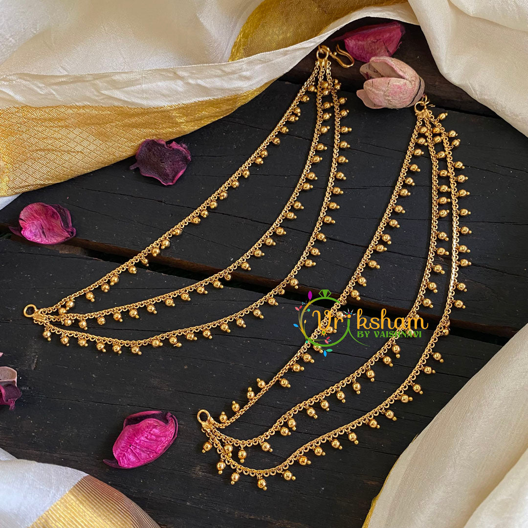 3 Layered maatil /Ear Chain- quality maatal with gold bead interluded with hanging ghungroo.