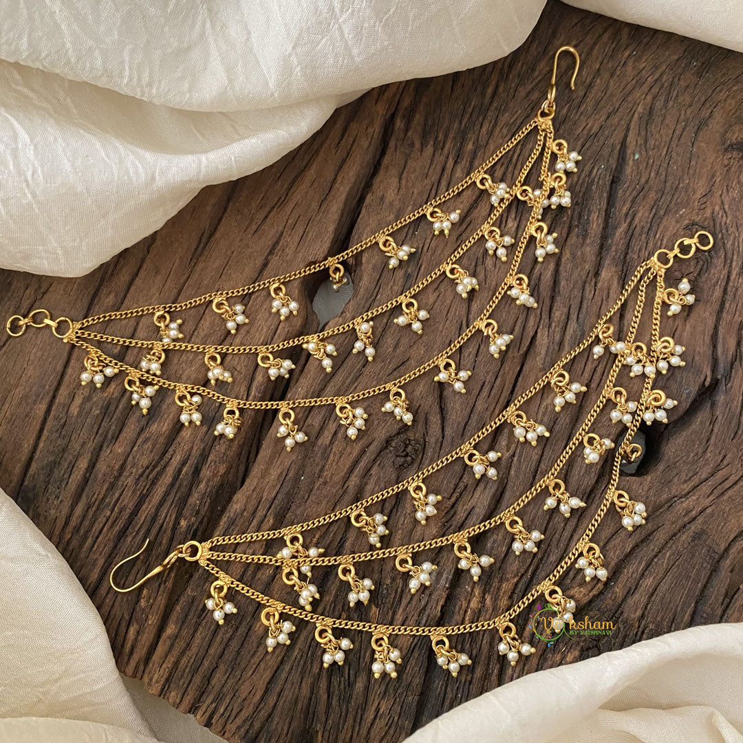 3 Layered Maatil /Ear Chain-Pearl - The three golden pearl layer maatil, also known as an ear chain, with tiny pearls interluded that adds grace and elegance to any attire.