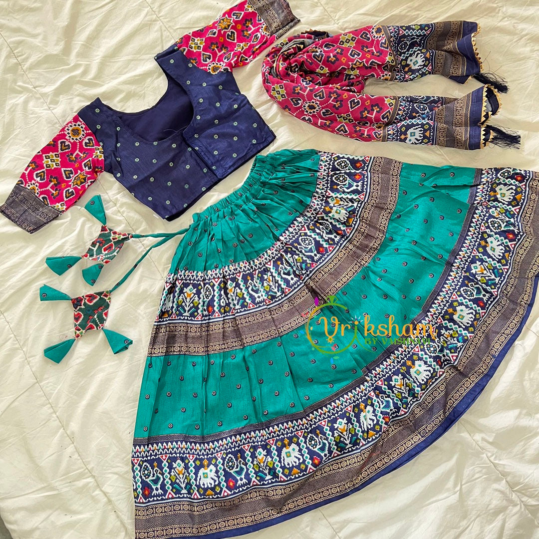 Blue Green Indian Traditional Girls Lehenga Set– Festive wear dress set - consists of top, skirt and duppata for girl kids and teens.