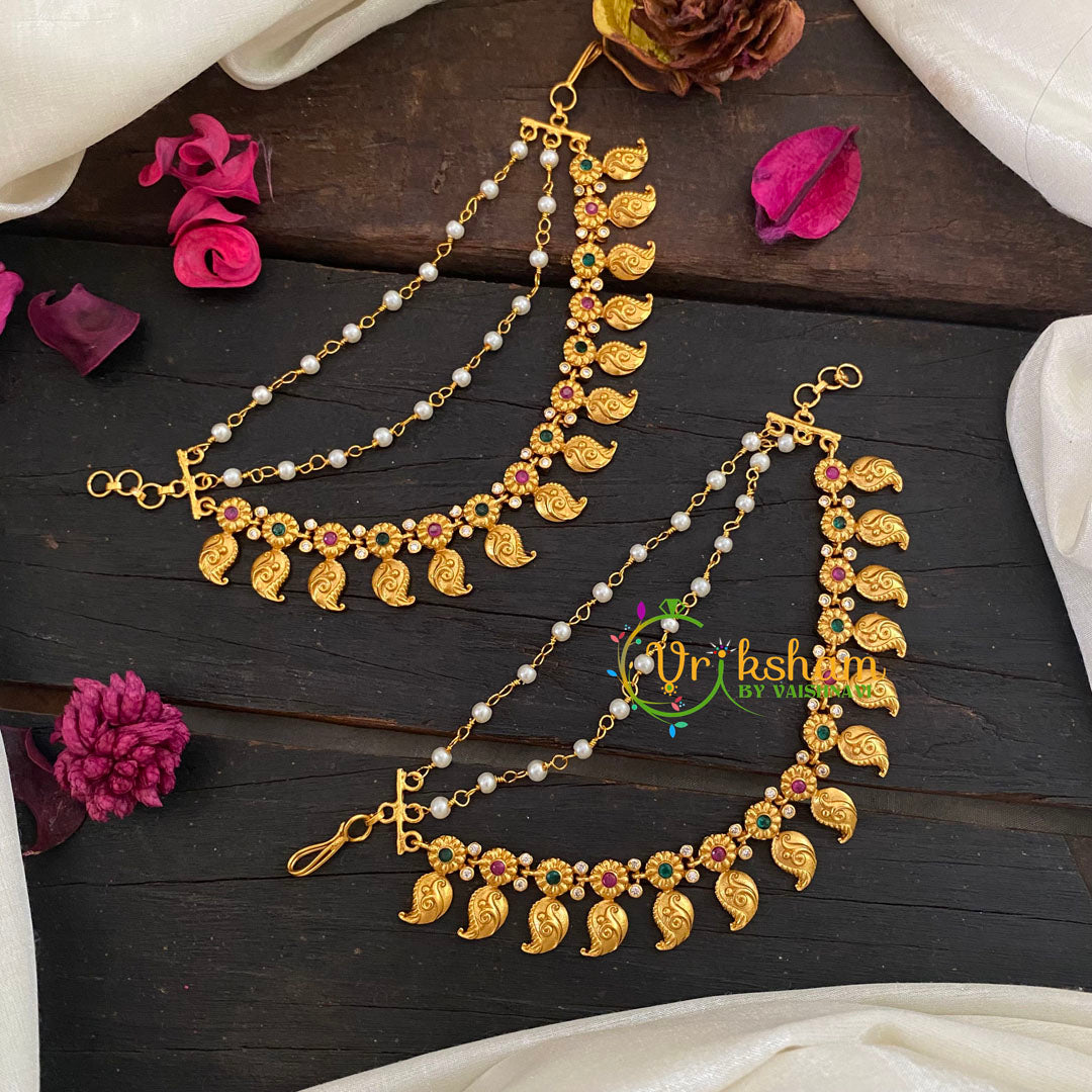 AD Stone 3 Layered Maanga maatil- floral pattern stone maatil/maatal ear chain.