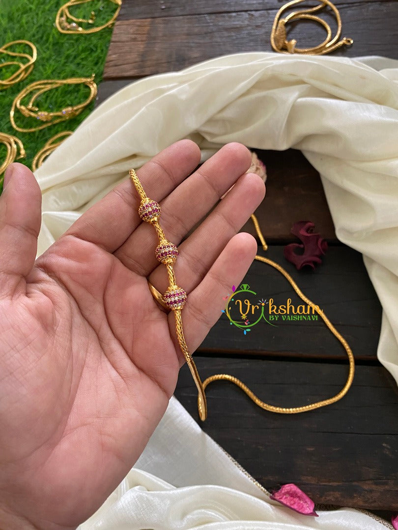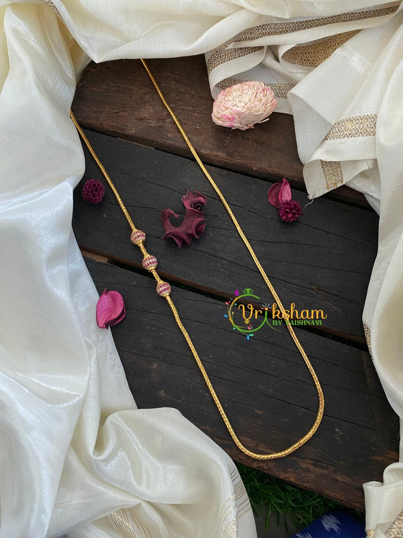 Traditional AD Stone Ball Mugappu Chain- White Red ad stone studded round 3 ball mugappu chain.