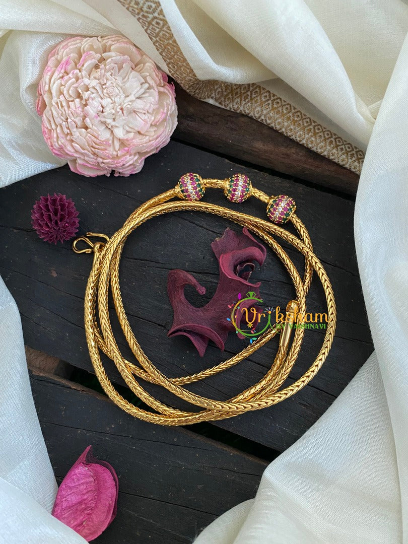 Traditional AD Stone Ball Mugappu Chain- Red White Green ad stone studded round 3 ball mugappu chain.