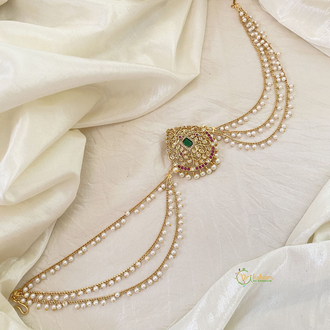 AD Stone Bun Billai with Maatil -Bridal Jada Billai -Pearl Maatil -G10917