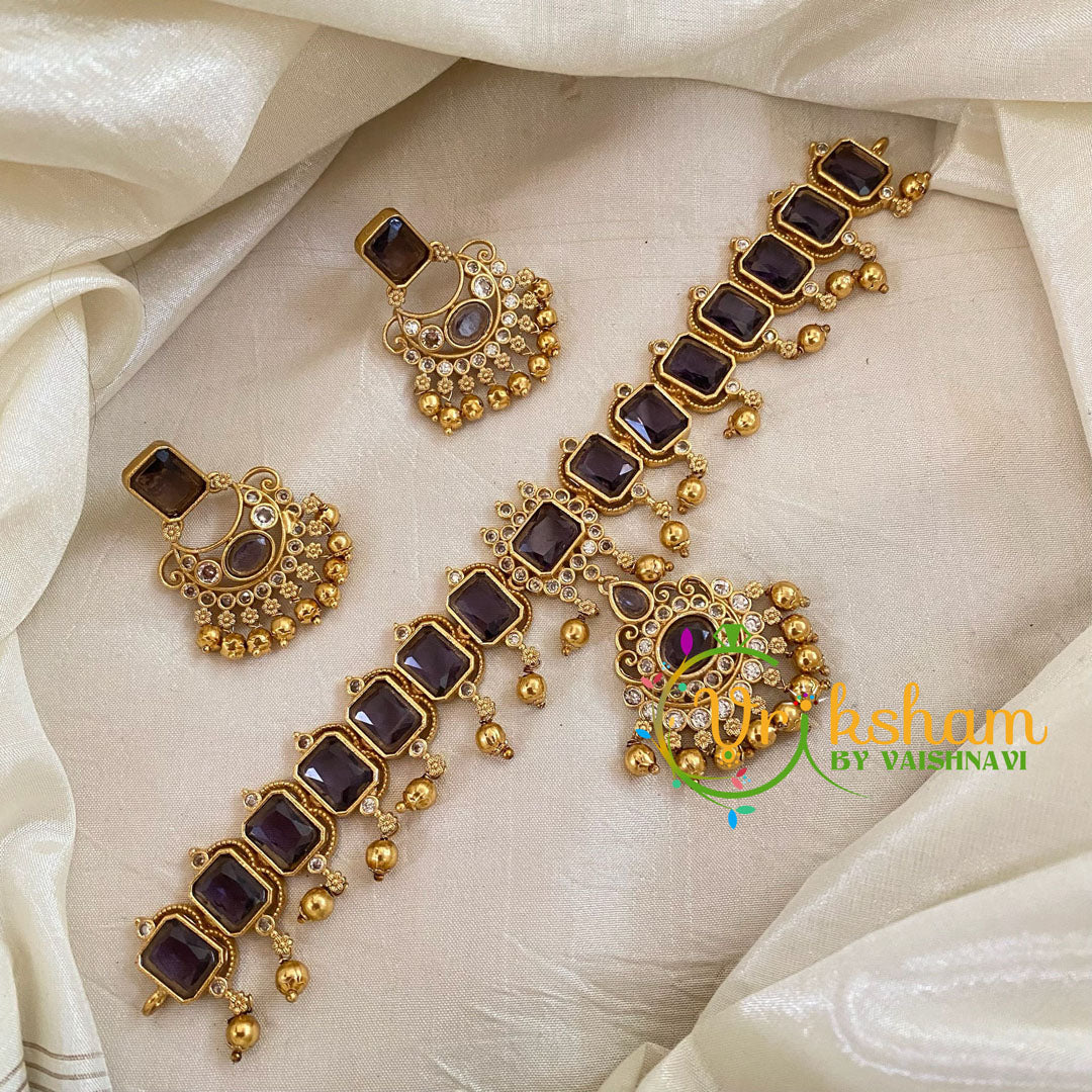 Premium AD Stone Choker Short Neckpiece- premium quality polish and imitation stones neckpiece, comes with matching earrings.
