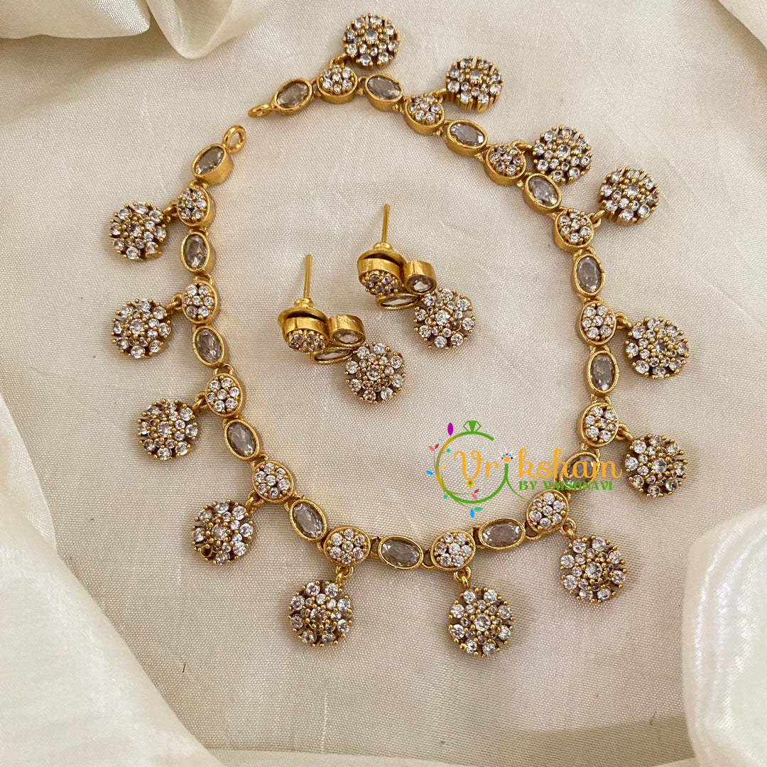 Premium AD Stone Choker Short Neckpiece – white AD stone studded elephant designed short neckpiece, Comes with matching ear danglers.