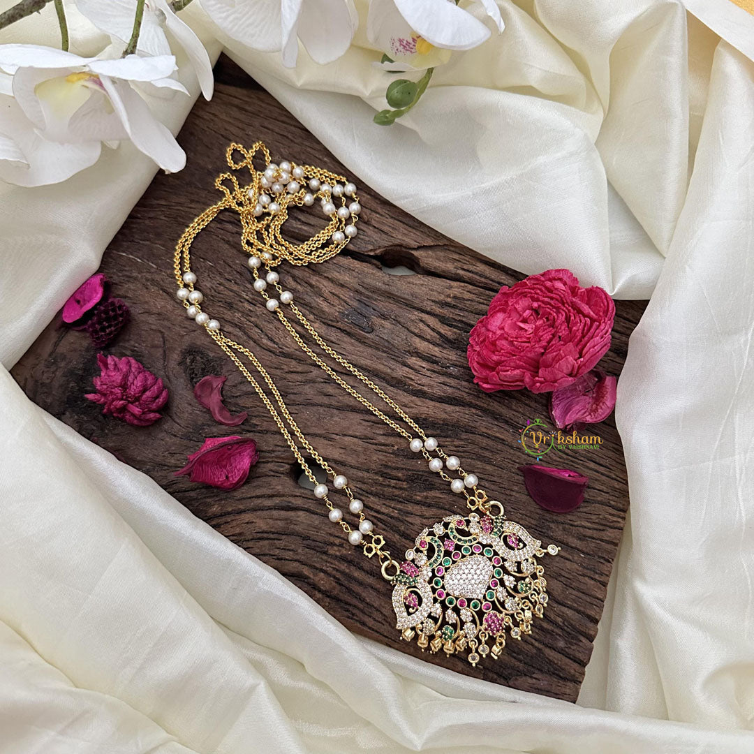 AD Stone Dual Peacock Pendant Chain-Red Green-G15399