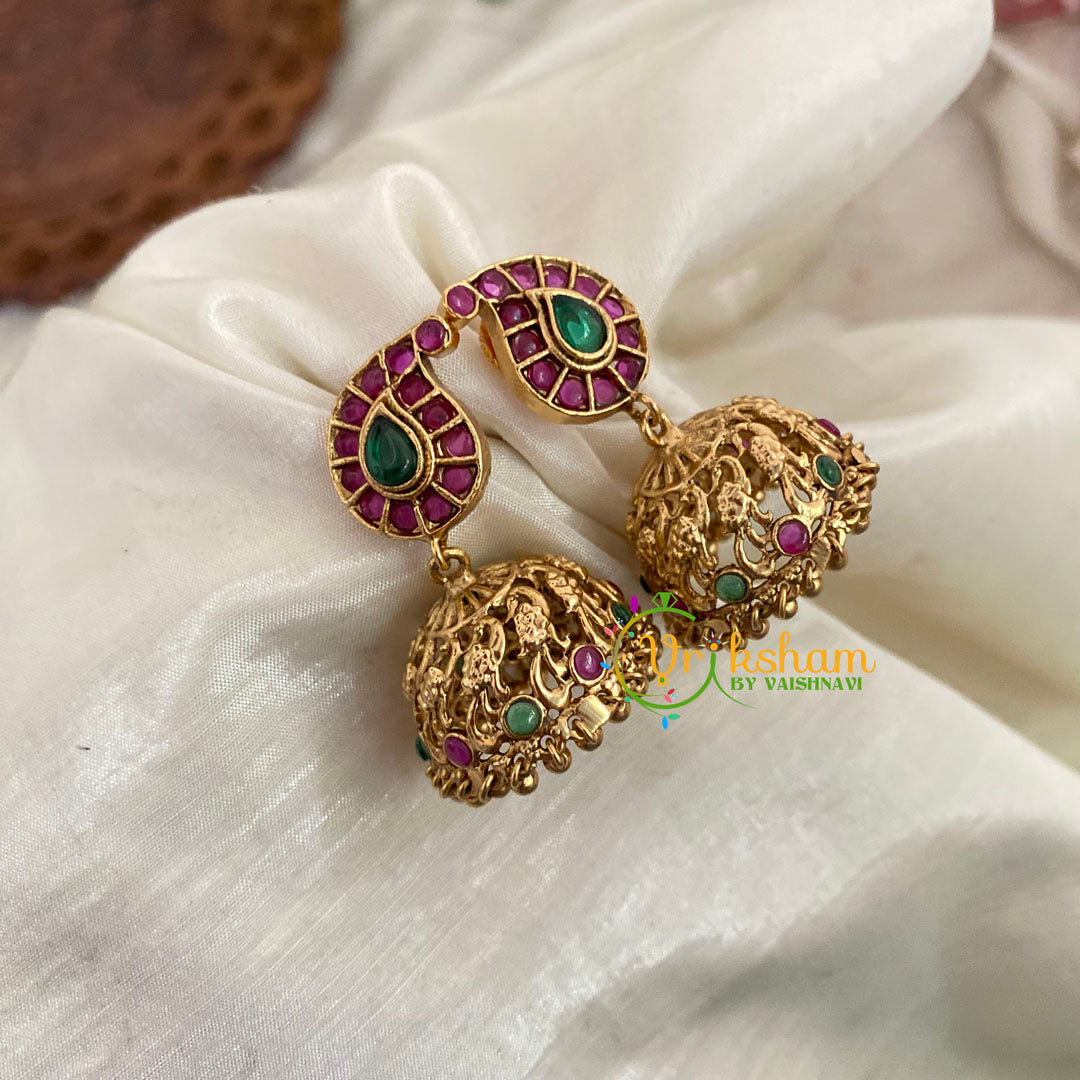 Premium AD Stone Jhumkas -Bridal Jhumkas – with paisley stud – pink and Green AD stone jhumka.