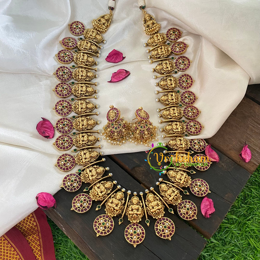For similar pieces visit, https://vrikshamindia.com/product-category/golden-jewellery/long-neckpieces/