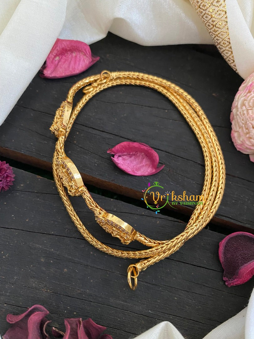 Traditional AD Stone Lakshmi Mugappu Chain-White AD stone studded lakshmi idols mugappu chain.