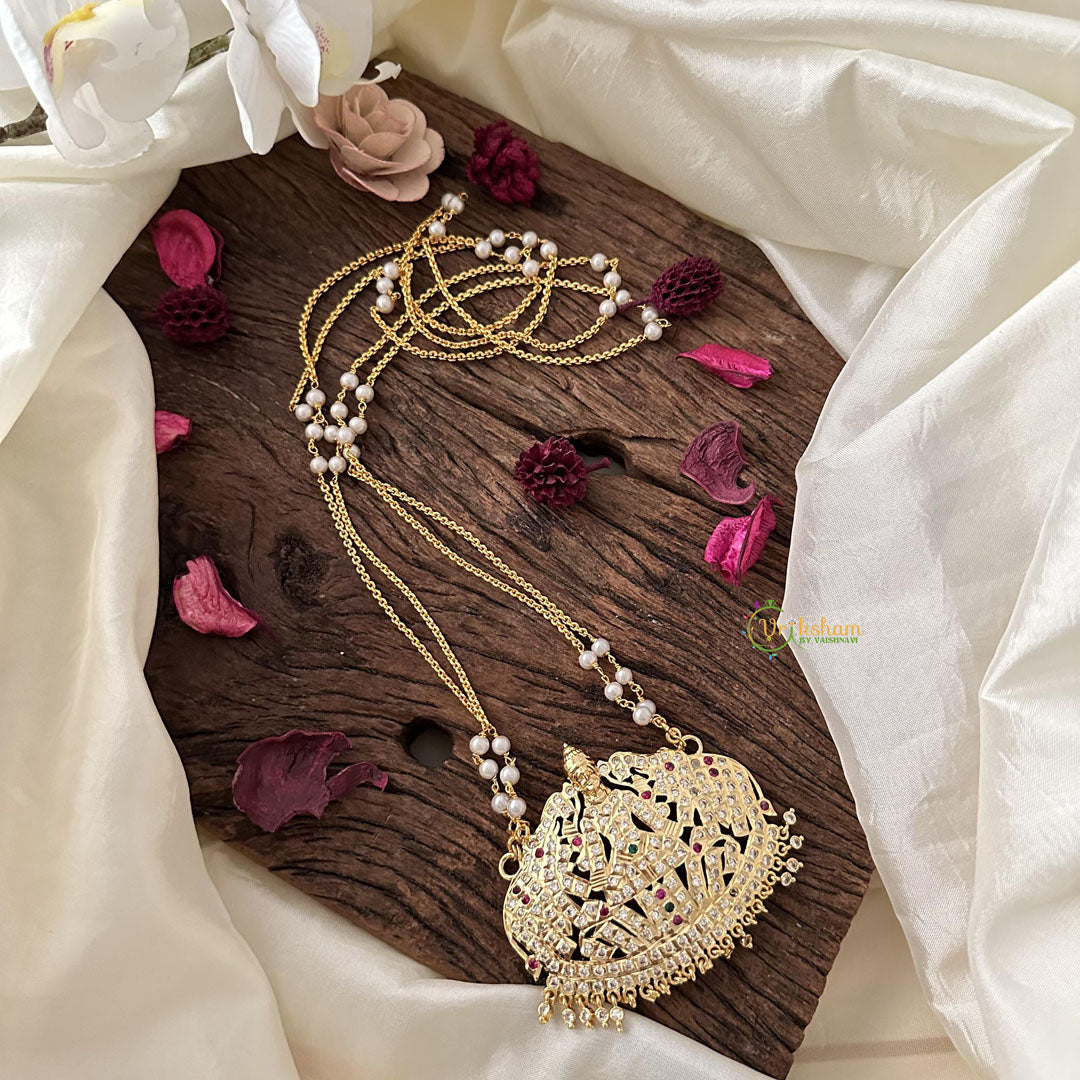 AD Stone Lakshmi With Dual Elephant Pendant Chain-Red Green-G15419