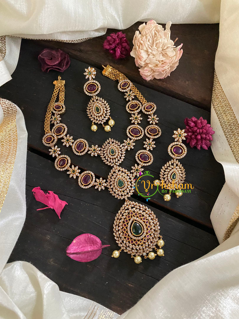 Gold Look Alike AD Stone Layer Neckpiece--Red and green ad stone white ad stone studded neckpiece, comes witgh matching earrings.