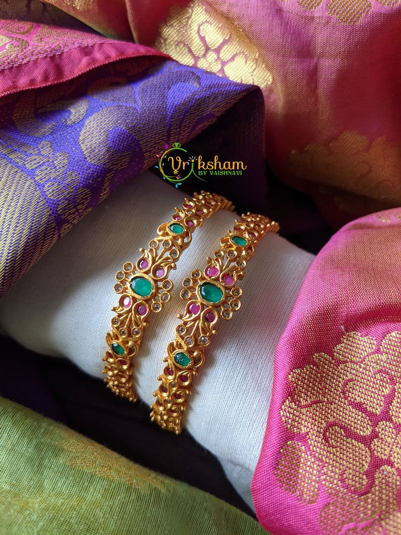 AD Stone Matt Bangles - Intricately designed thick floral pattern Matt finish bangles with AD stones. Comes together as a pair only.
