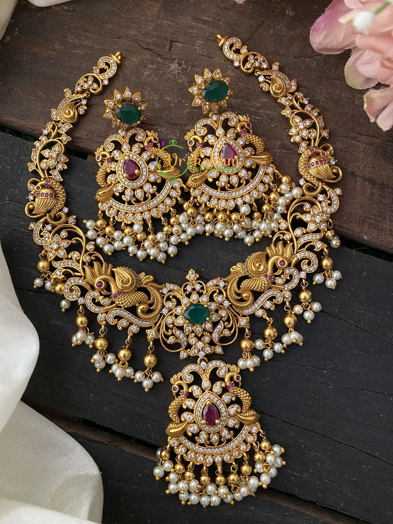 AD Stone Peacock Choker Neckpiece -AD Stone studded premium quality pendant neckpiece, comes with matching earrings.
