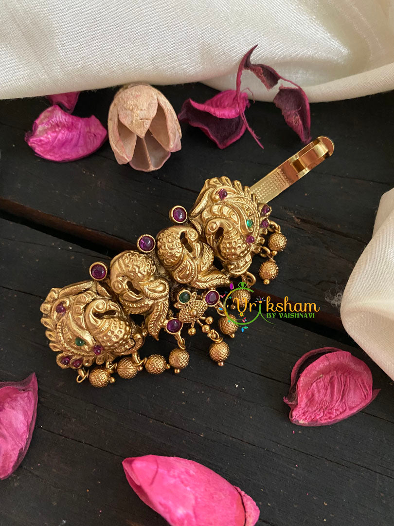 Premium Gold AD Stone Peacock Hair Clip-2 Dual Peacock- Gold Look Alike Hair Clip – Green Red White AD stone studded hair clip.