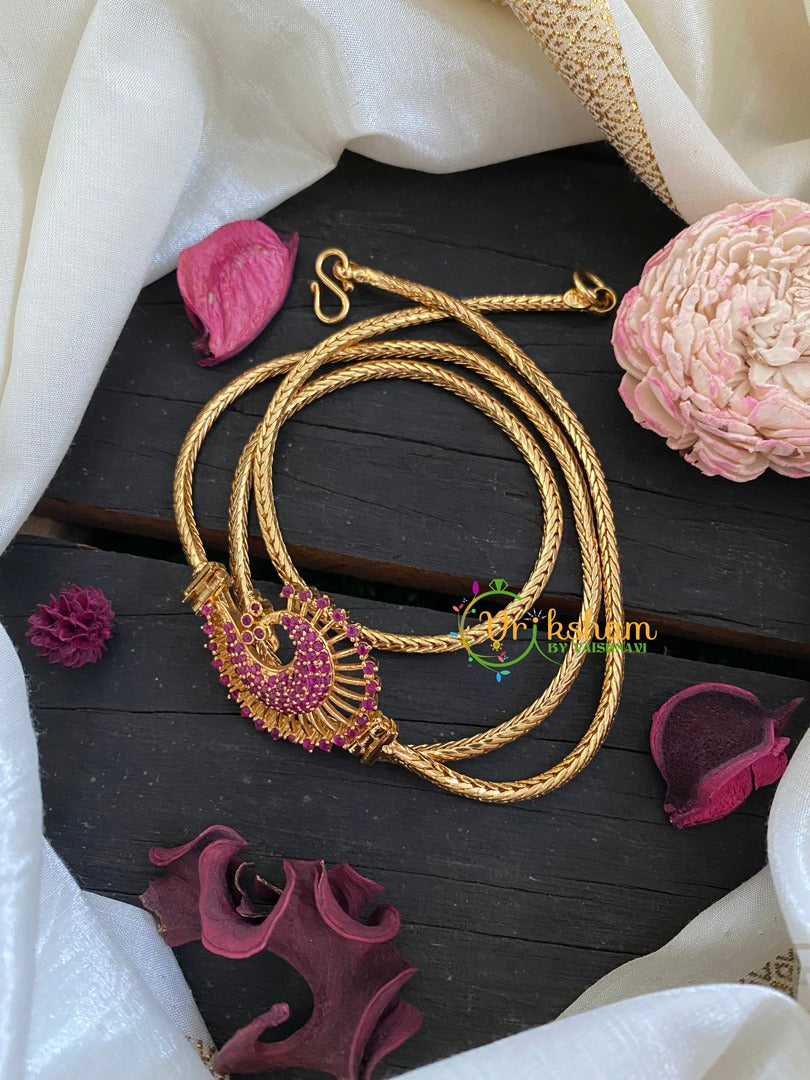 Traditional AD Stone Peacock Mugappu Chain-Red AD stone studded Single Peacock mugappu chain.